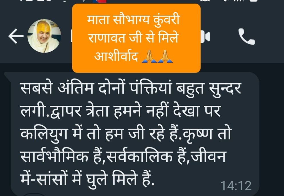 જેમ વસંત ઋતુ નો આછો ધીમો, ભીનો અને હળવાશ ભરેલો વરસાદ આકાશ ને કોમળ તાપ માં ભીંજવે અને જોનારા ને ઇન્દ્રધનુષ નજરે પડે, એવીજ રીતે કૃષ્ણ ભક્તિ ની હેલી જ્યારે ભવસાગર ના તપતા સૂર્ય માં જીવન ને ઘેલું કરે ત્યારે કૃષ્ણધનુષ દેખાય.
